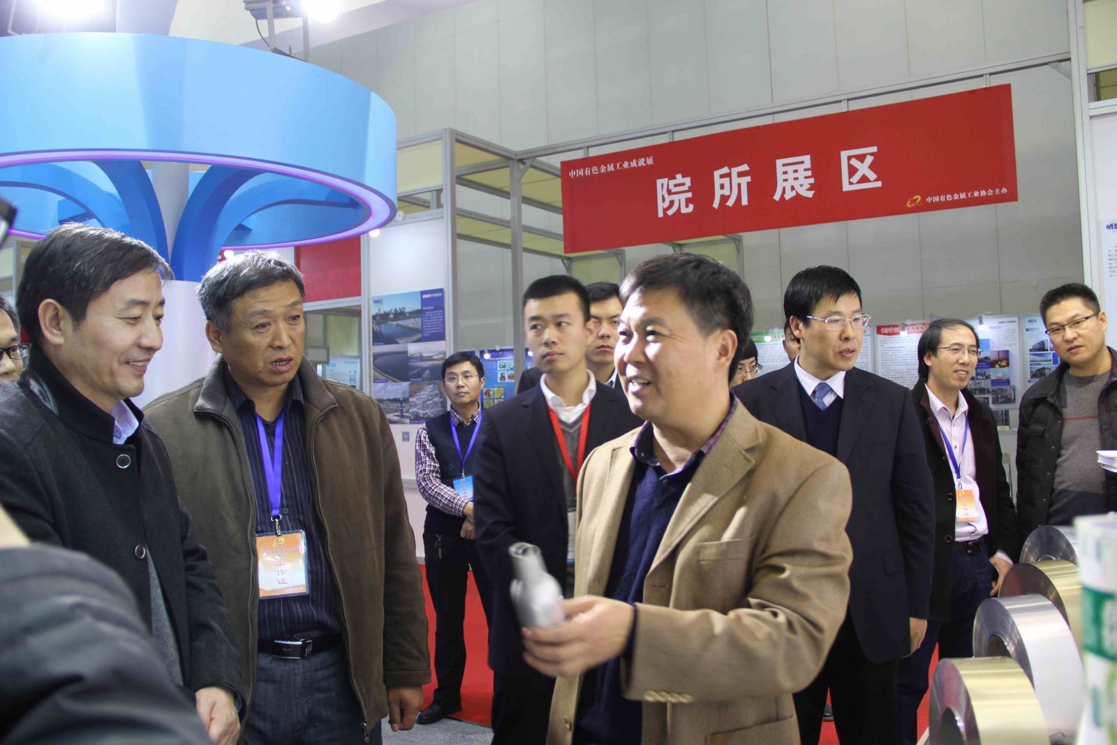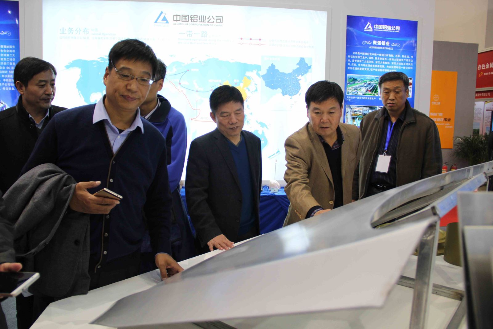 11月14日下午,賀懷欽董事長親自帶隊,集團公司領導班子利用短短兩個小時的時間,先后詳細參觀了有色金屬工業成就展的各個展區、展臺。偌大展廳內,各個展臺陳列著有色金屬新材料和鋁加工產品,包括大飛機及船舶用鋁合金蒙皮、輕軌高鐵、飛機起落架、易拉罐罐體、罐蓋及拉環、汽車前機蓋、卡車油箱踏板、手機后殼及電池蓋、電腦后蓋及內構板、鋰離子電池用鋁合金板、食品包裝、自行車等多種鋁合金制造產品,可謂琳瑯滿目,美不勝收,預示著鋁精深加工消費市場未來廣闊的應用前景。每到一處,賀懷欽董事長和領導班子一起,邊參觀邊詢問,從產品外觀到材質、從應用到市場占有份額,尤其對每種產品的未來市場前景都一一細致入微地調研詢問,并饒有興致地不時拿起鋁合金加工產品進行仔細觀察。公司領導班子成員邊走邊看,邊思考邊交流,開放共享、充滿創新元素的成果展讓公司核心層有了很大的收獲。
