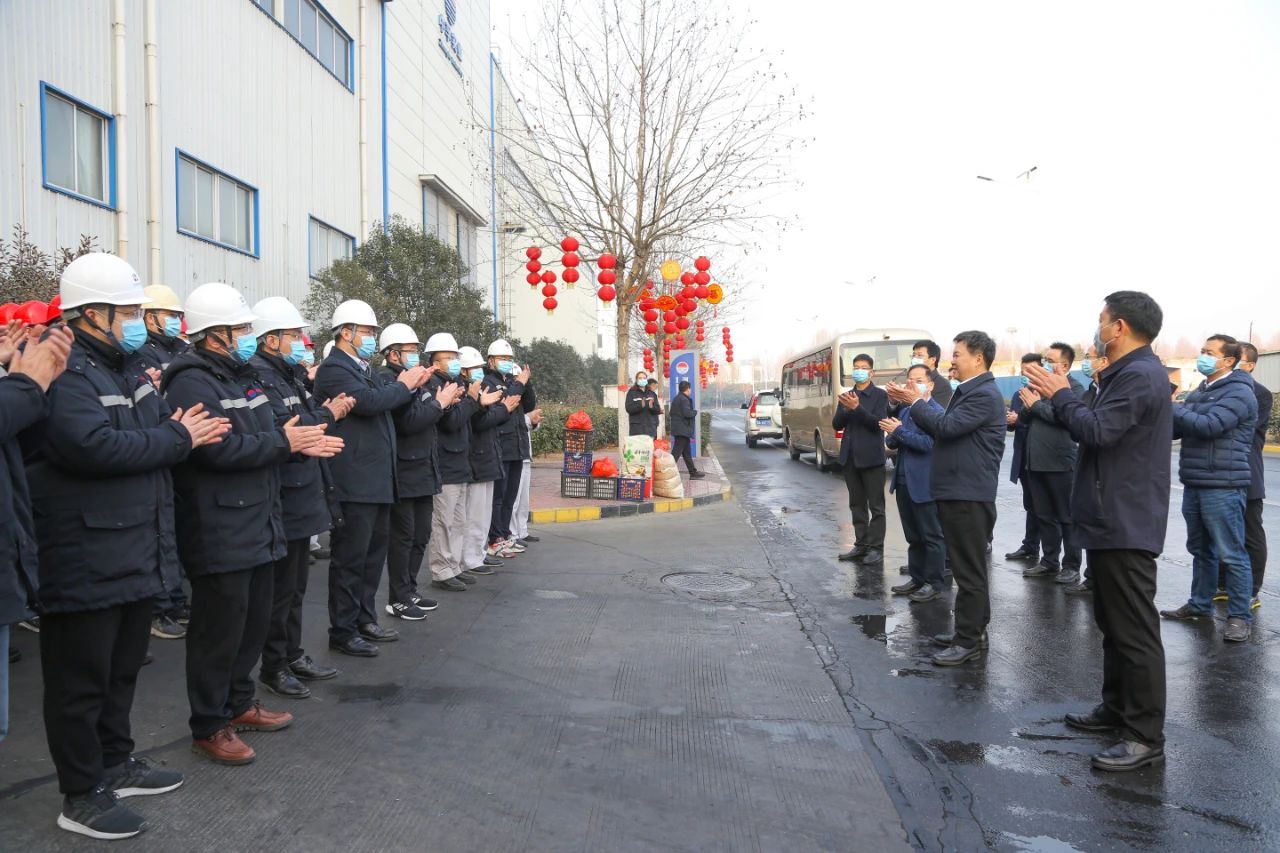 2月12日,新春大年初一,碧空如洗,風和日麗。上午8點,豫聯集團董事長賀懷欽帶領全體領導班子到企業生產一線進行春節慰問,向堅守崗位的廣大干部員工致以誠摯的新年祝福,并送去節日慰問品。