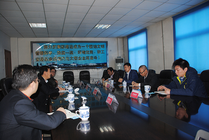 考察組一行先后到豫聯工業園區觀景臺,鋁業公司400KA電解車間,高精鋁分公司熔鑄車間、熱軋車間、冷軋車間進行了參觀,隨后雙方在鋁電辦公樓二樓會議室進行了深入、友好的會談。