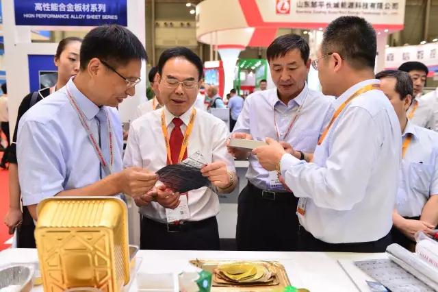 啟動(dòng)儀式結(jié)束后,陳全訓(xùn)會(huì)長(zhǎng)等領(lǐng)導(dǎo)親臨中孚實(shí)業(yè)展臺(tái),詳細(xì)觀摩了公司合金板材、罐料、鋁箔等鋁精深加工產(chǎn)品展示,仔細(xì)詢問(wèn)了公司生產(chǎn)經(jīng)營(yíng)及市場(chǎng)銷售情況,對(duì)企業(yè)取得的轉(zhuǎn)型升級(jí)顯著成績(jī)連聲稱贊。