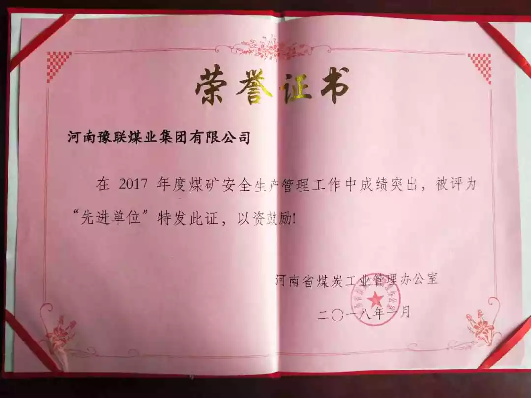 豫聯(lián)煤業(yè)公司獲得“河南省煤炭工業(yè)安全生產(chǎn)先進(jìn)單位”獎