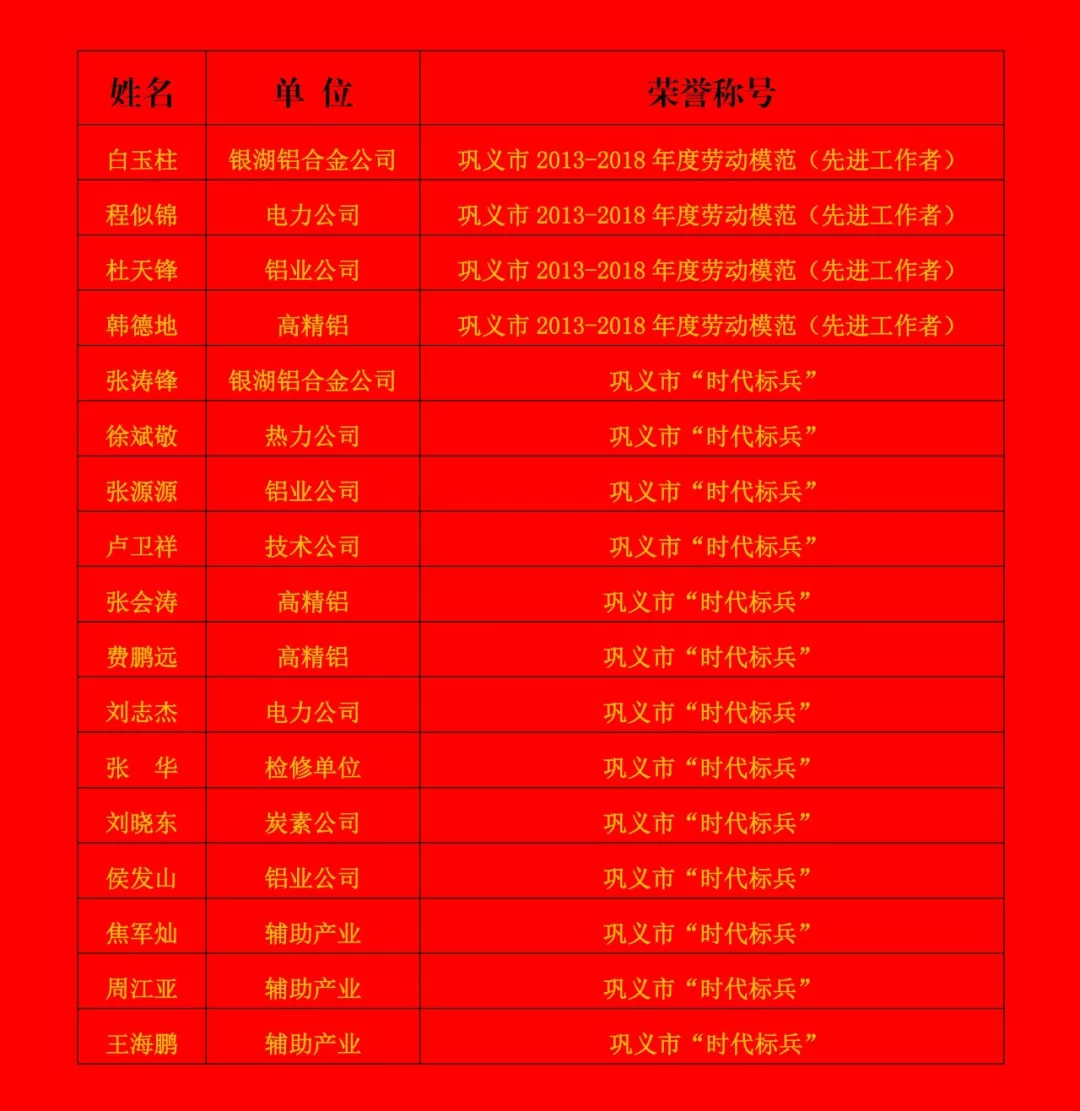 會議對獲得鞏義市2013-2018年度勞動模范(先進工作者)和鞏義市“時代標兵”榮譽稱號的同志進行表彰。