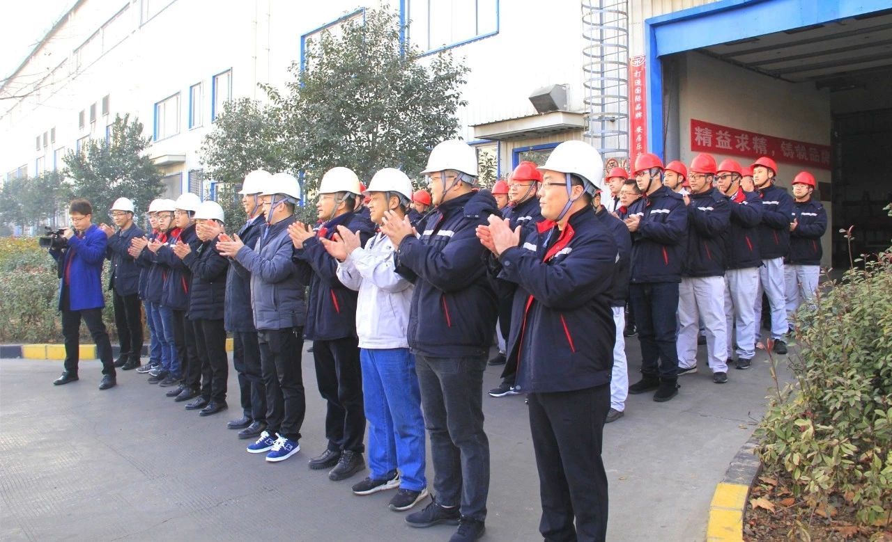 在中孚炭素公司,崔紅松董事長勉勵炭素公司創新思路,開拓性工作,2019年不斷保持行業領先地位,綠色環保,節能高效,多創效益。