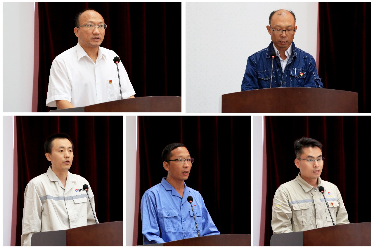 會議在雄壯的國歌聲中拉開序幕。16位預備黨員面向黨旗莊嚴宣誓,光榮加入中國共產黨,全體與會黨員重溫了入黨誓詞。胡永杰、張華、張學、張國培、張海峰五位同志分別作為先鋒黨員代表、“時代楷模”代表、“師帶徒”優秀師傅代表、技術比武獲獎者代表、先鋒黨支部代表進行了精彩發言,充分體現了先進黨員、先進員工在不同崗位上無私奉獻、精益求精的崗位工匠精神,值得全體員工學習借鑒。
